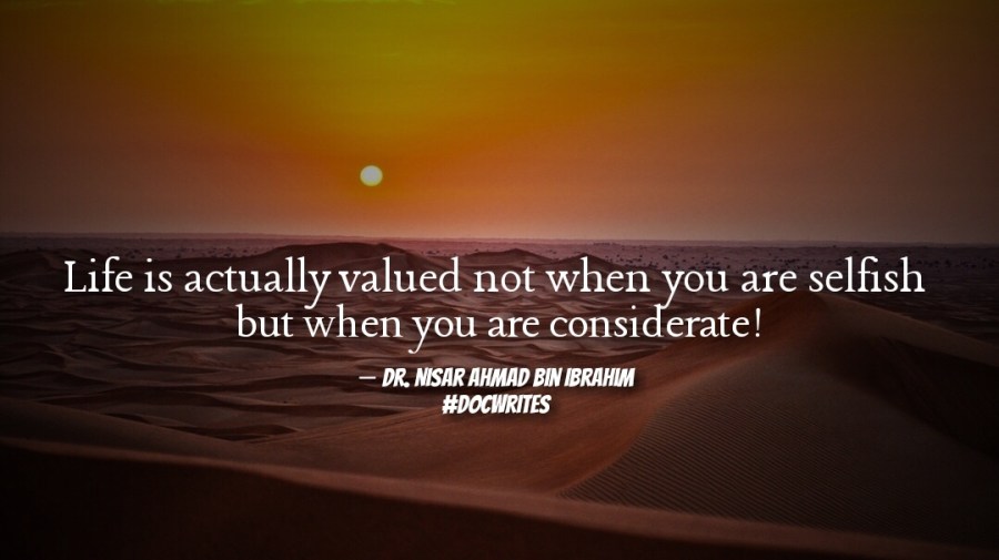 Sometimes in life we get so self centered like earth and want the Sun only for us but we fail to realize there are other planets as well revolving around the Sun. ― Dr. Nisar Ahmad bin Ibrahim. #DocWrites