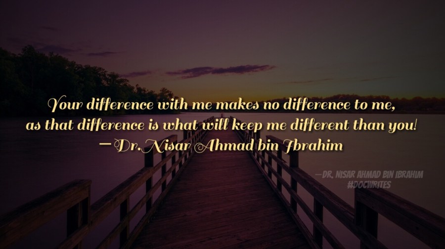 Your difference with me makes no difference to me as that difference is what will keep me different than you! ―Dr.Nisar Ahmad bin Ibrahim#DocWrites