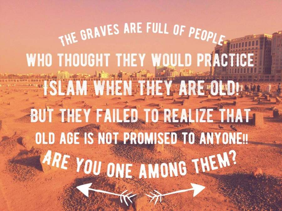 Sadly this is the hope many Muslims fall back on. Whenever it comes about practicing Islam - the way it has to be practiced, then people rely it on their old age to do the same! Now this is nothing but deception of this world and you are deceiving yourselves to only be woken up …